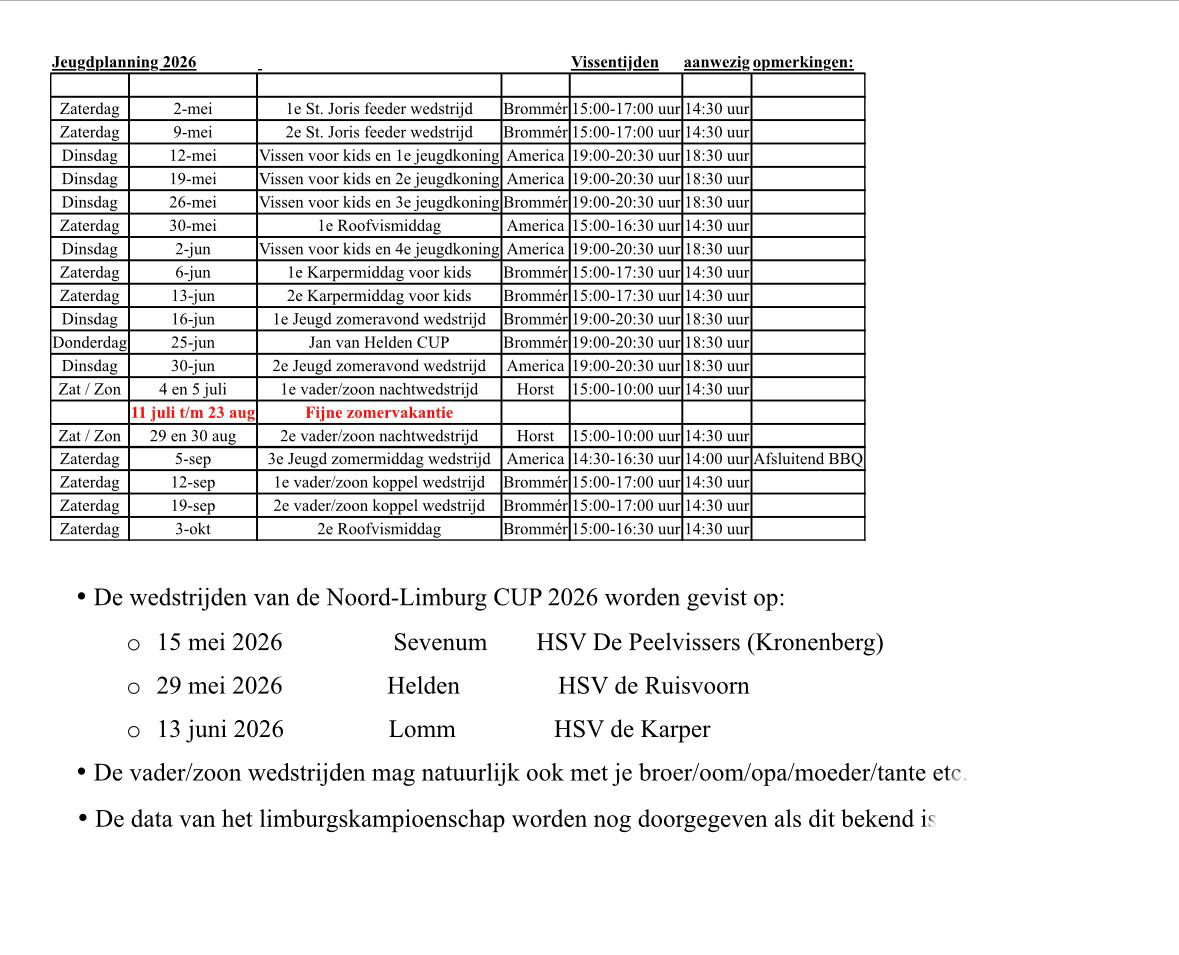 Wedstrijdschema Jeugd- en Vader/Zoonwedstrijden 2026