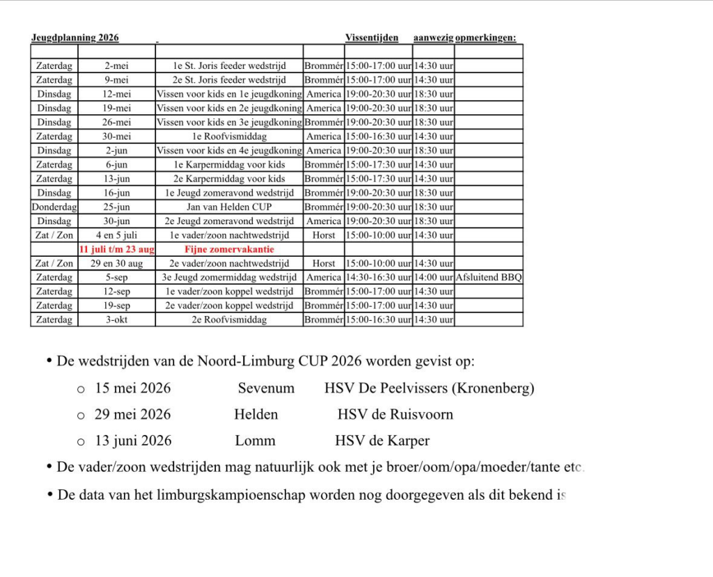 Wedstrijdschema Jeugd- en Vader/Zoonwedstrijden